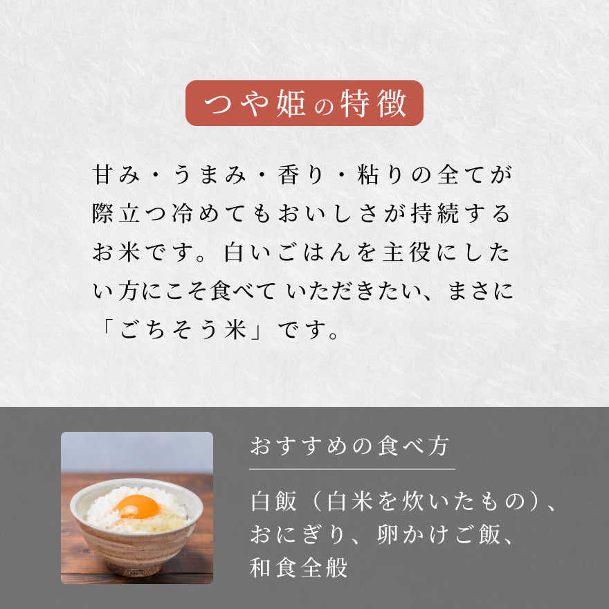 「ひとめぼれ」は、その名の通り、ひと口食べれば誰もが恋に落ちてしまう人気品種です。甘味、粘り、口当たりのバランスが抜群で、どんな料理にも合わせやすく、毎日食べても飽きがこないのが特長。ふっくらと柔らかく炊き上がるため、焼き魚や煮物といった和食との相性は格別です。